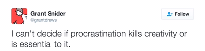 But then again, there are times when I try to write a new post and stare at the blank WordPress screen for minutes, hours even, with nothing on my mind, so I put it off and do something else. Much later(more like days later), the inspiration and creativity to continue comes and it flows seamlessly. So we could say procrastination helps sometimes but I do not believe that it is essential to creativity.